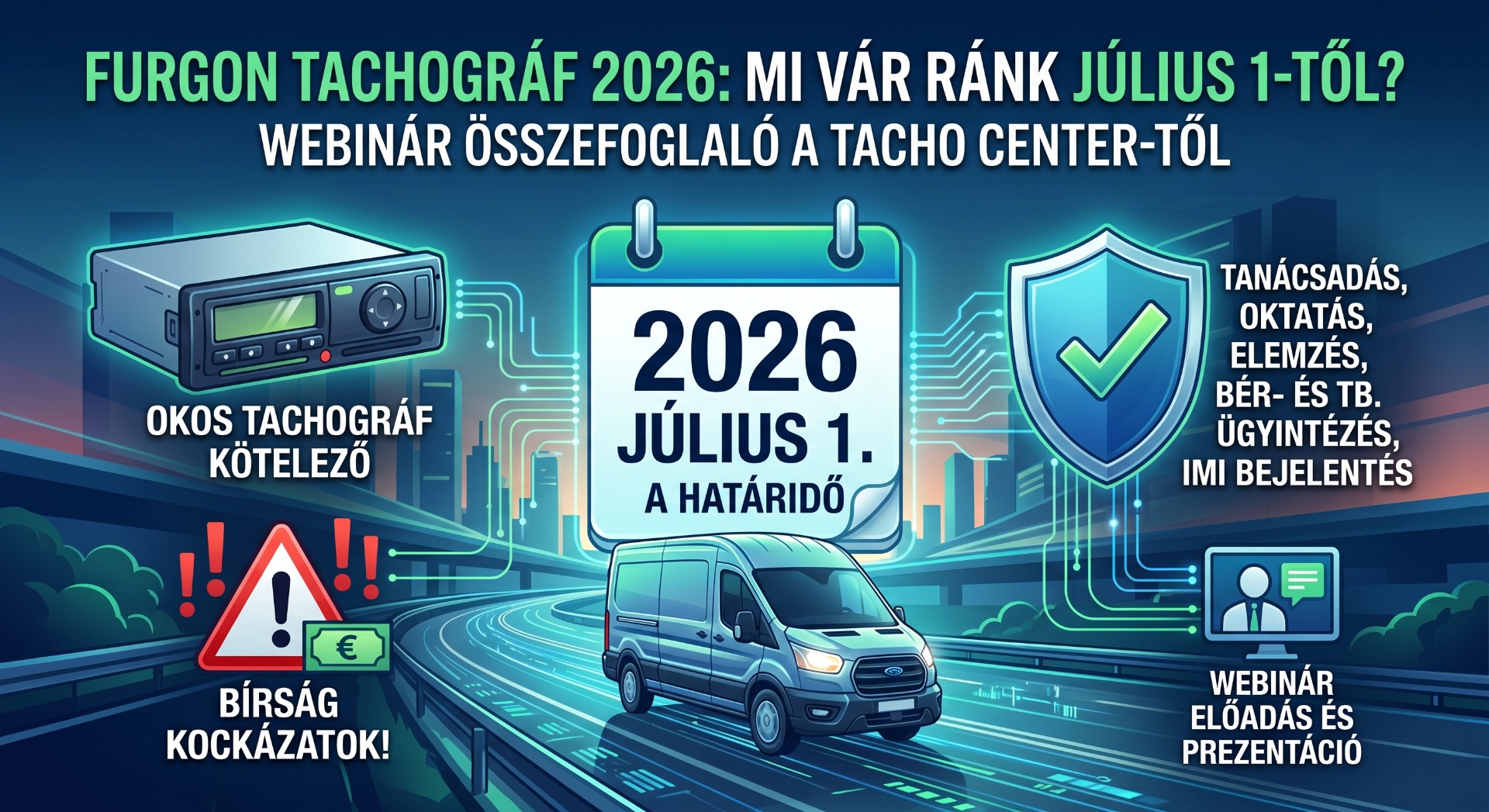 A nemzetközi furgonos fuvarozás világa 2026. július 1-jével végleg megváltozik. Az Európai Unió Mobilitási Csomagjának egyik legfontosabb lépcsőfoka életbe lép: a 2,5 és 3,5 tonna közötti össztömegű járművek számára is kötelezővé válik az intelligens tachográf használata a nemzetközi forgalomban.